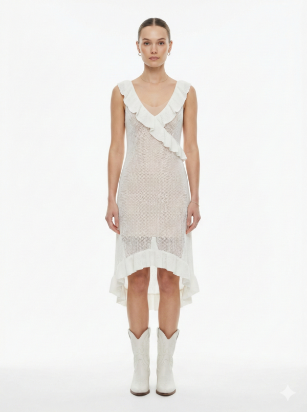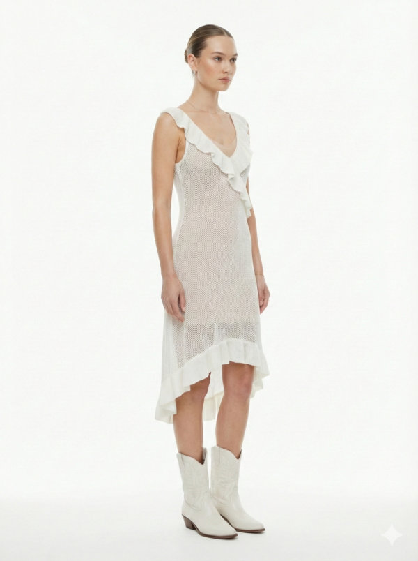 White Pleated tulle dress with Fuchsia pink teardrops with a scarf