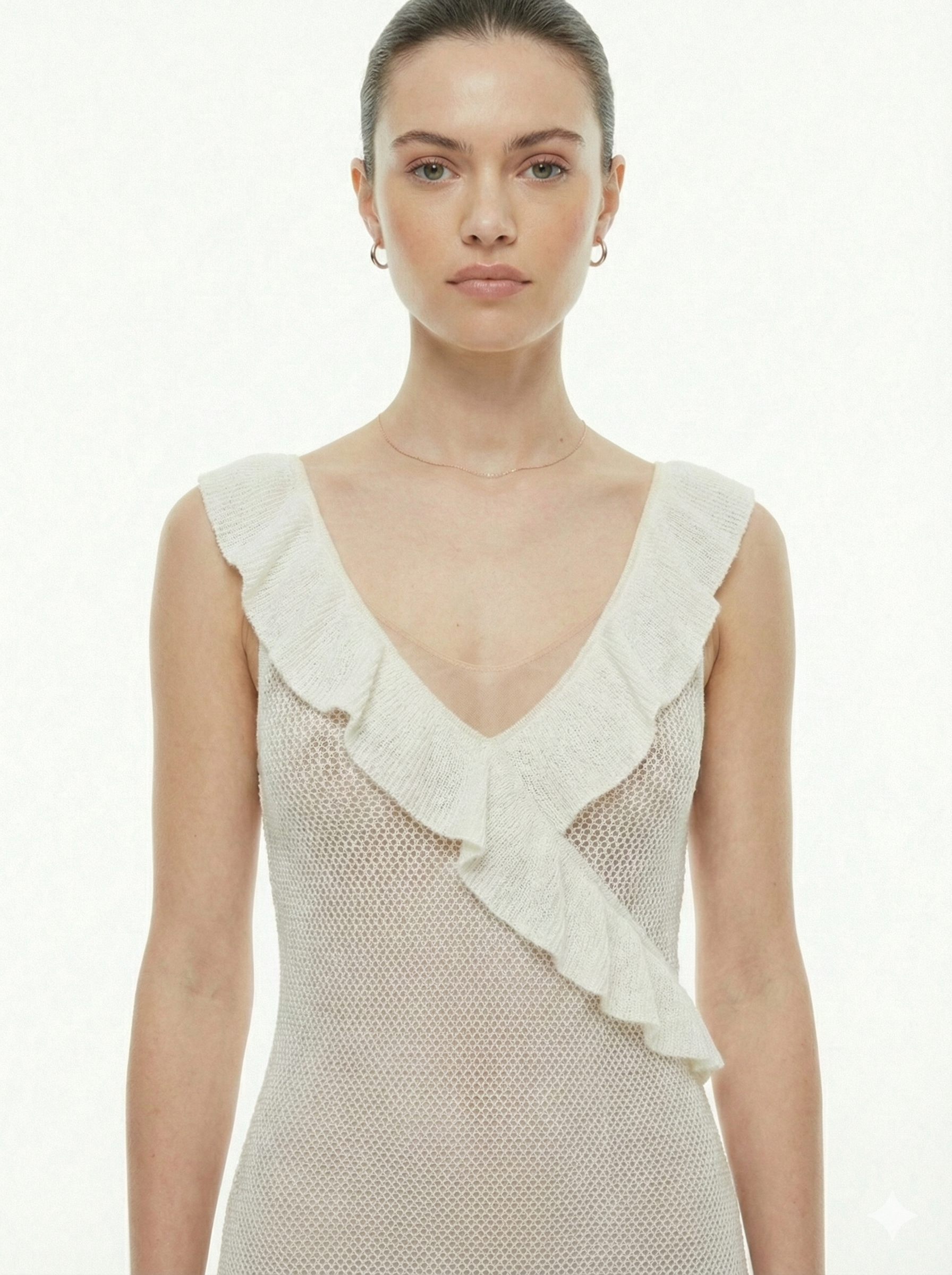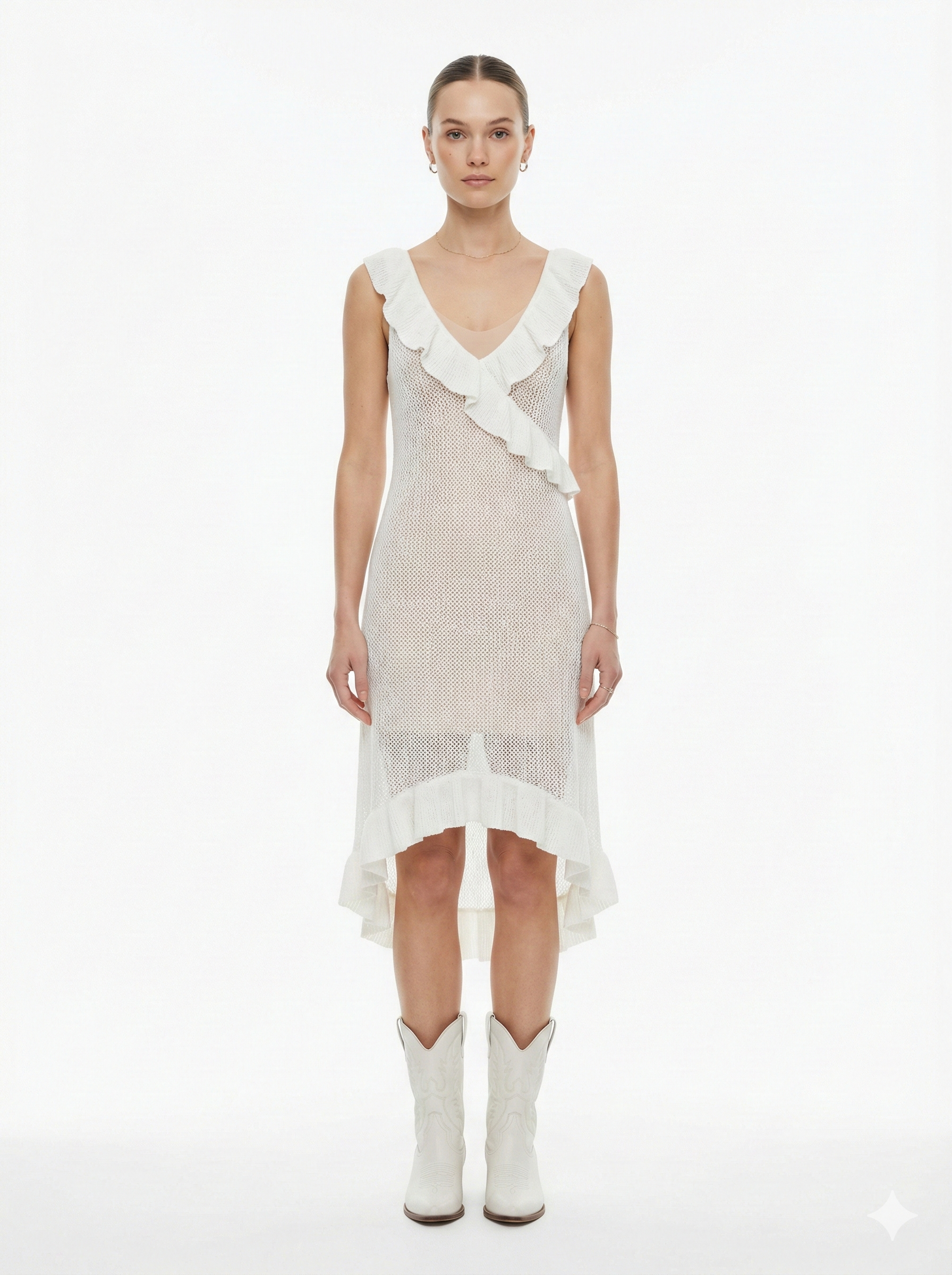 Be the first to review “Ruffled White Semi Sheer Knitted Dress”