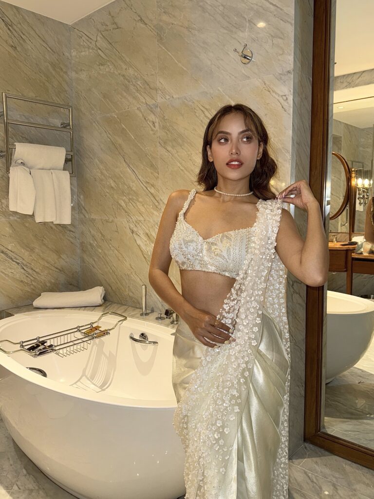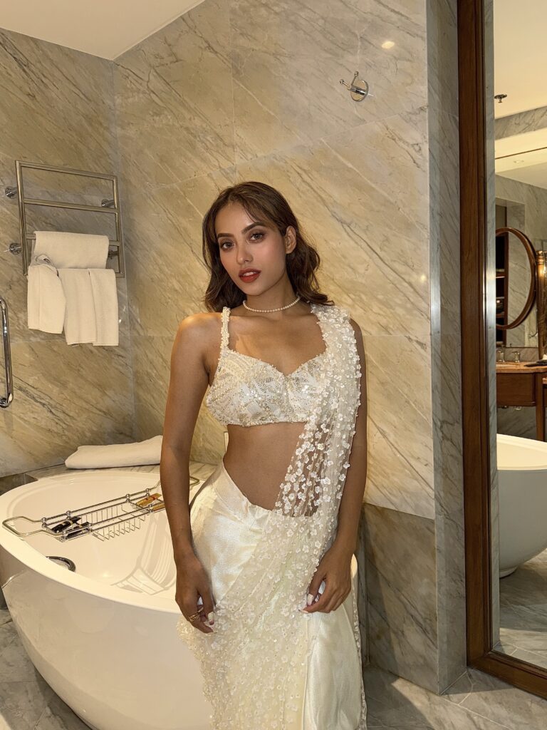 A statement piece that blends traditional craftsmanship with modern silhouette—this saree is designed to make you feel powerful, polished, and unforgettable.