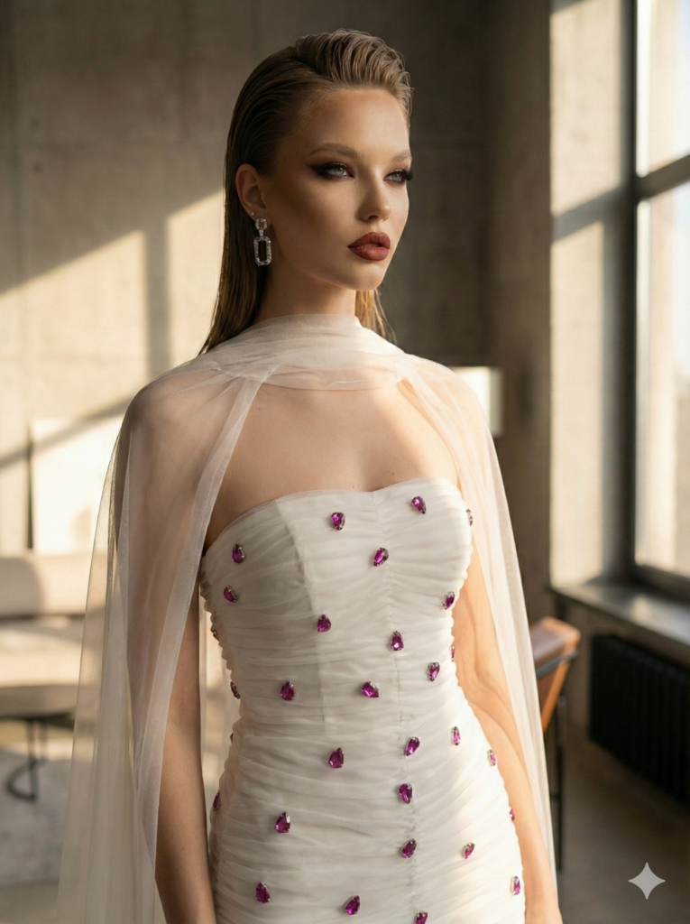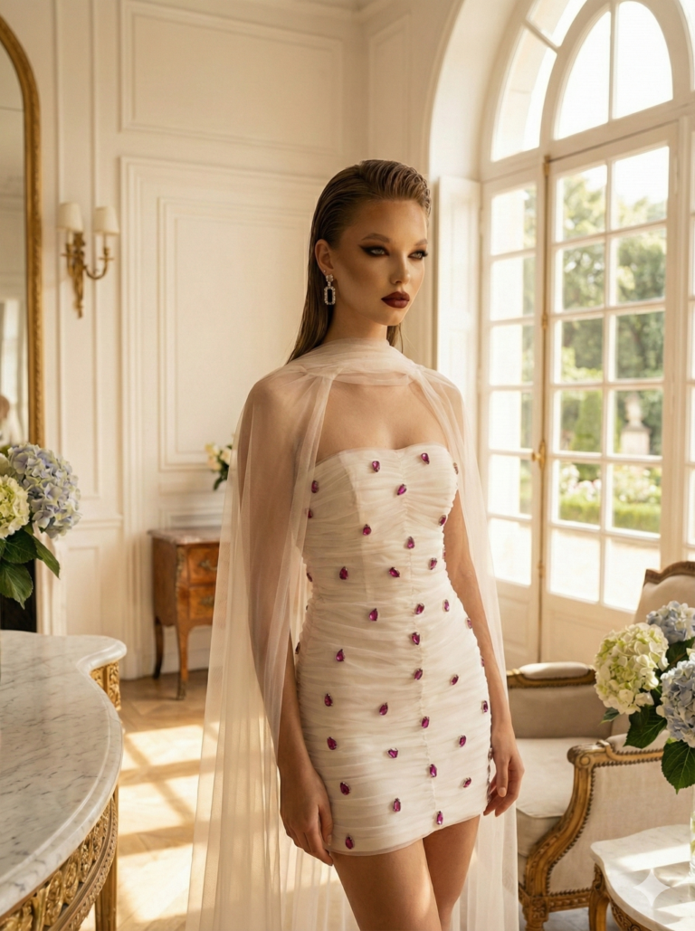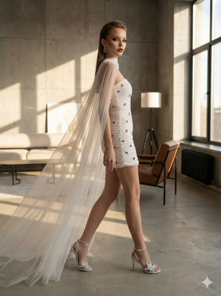 Cocktail events, wedding soirées, engagement parties, receptions, festive celebrations, and modern bridal looks.