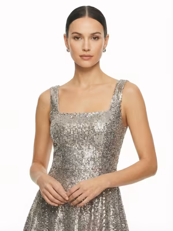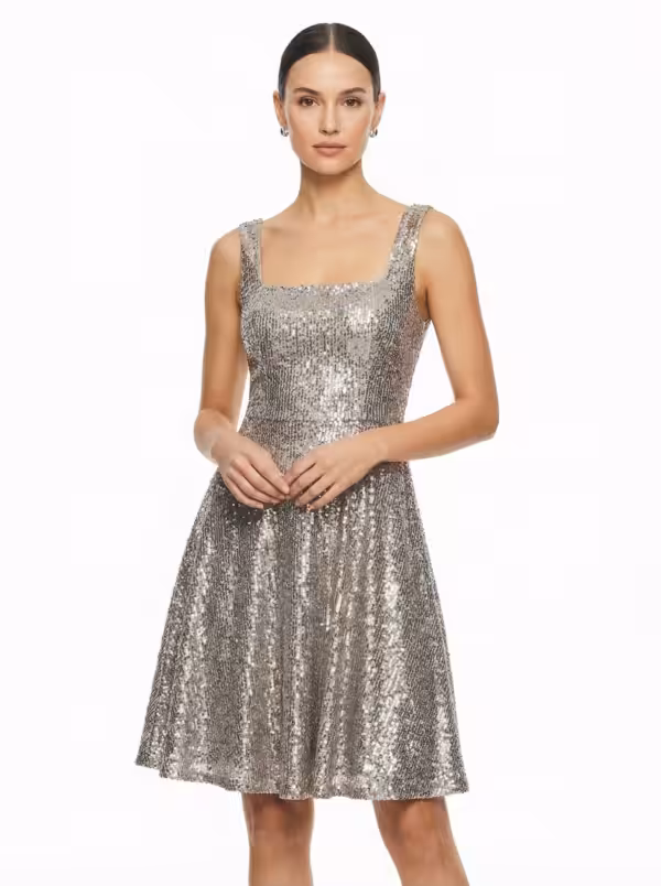 Square Neck Short a Line Sequin Dress